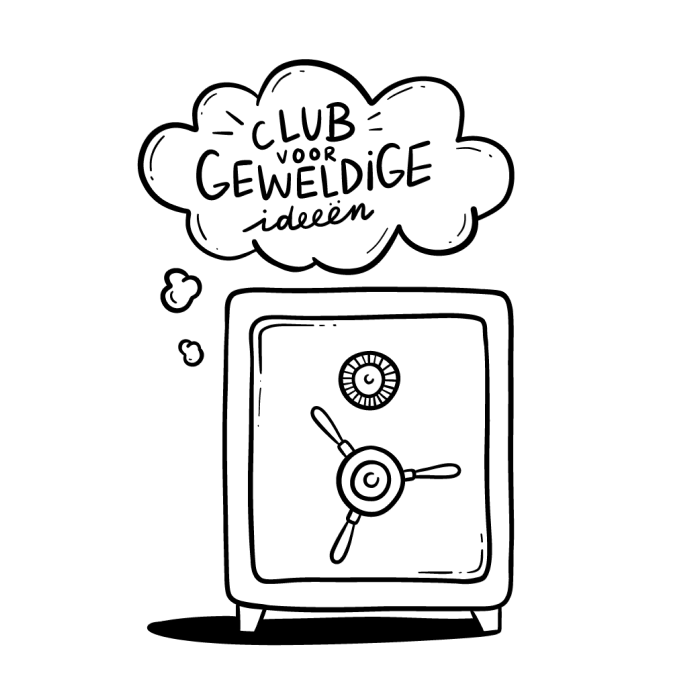 Bij elk probleem zal eerst heel goed in kaart gebracht worden WAT het probleem is. Vervolgens zullen er ideeën verzonnen worden. Eerst groots en meeslepend, vervolgens steeds haalbaarder. Uiteindelijk zullen de ideeën gepresenteerd worden aan een zo relevant mogelijke jury. Alle ideeën, groot en klein worden bewaard in onze Club Kluis.